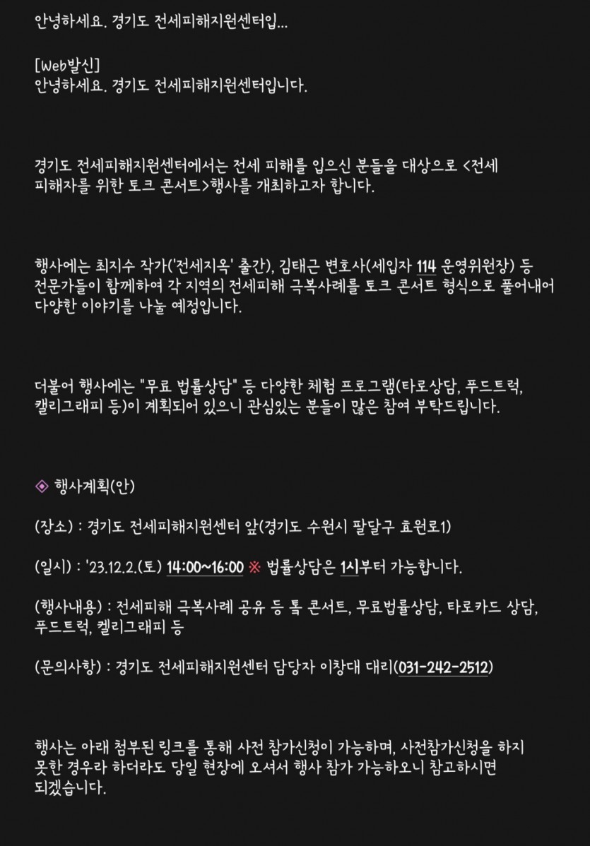 경기도 전세사기 피해자들을 위한 행사한답니다...