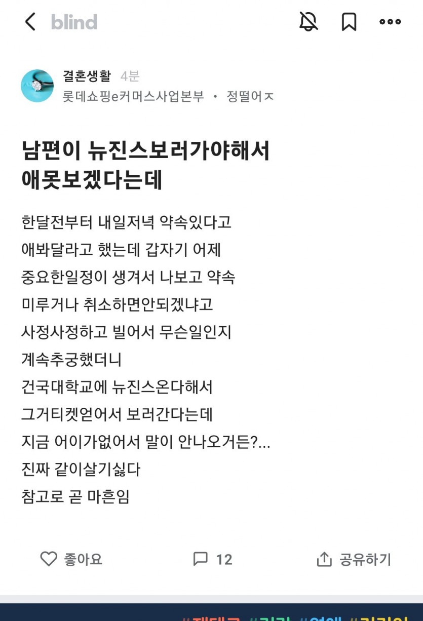 뉴진스 보러가야 한다는 남편..어이가 없네?