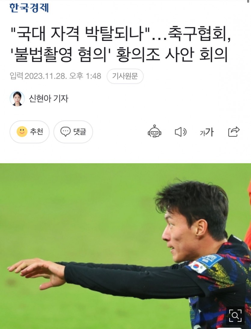 "국대 자격 박탈되나"…축구협회, '불법촬영 혐의' 황의조 사안 회의