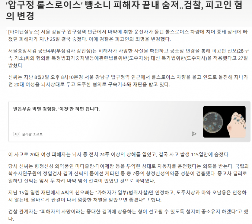 압구정 롤스로이스 뺑소니 피해자 끝내 숨져