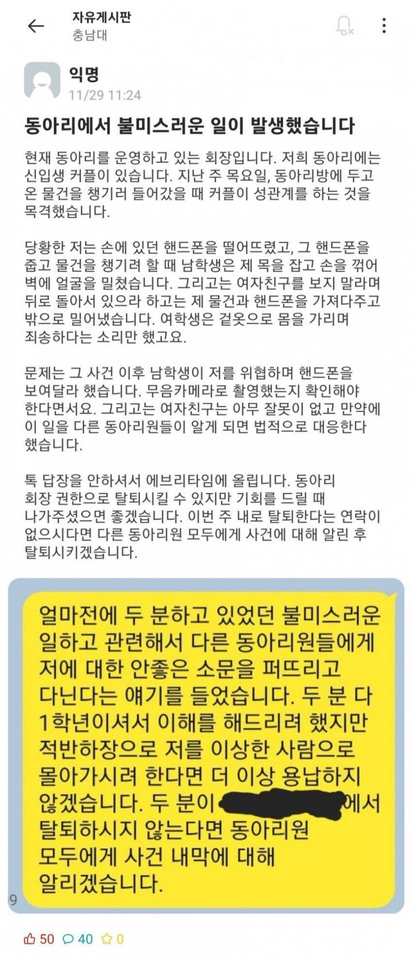 충남대 동아리방에서 성관계 후 동아리회장 폭행 ㅋㅋ