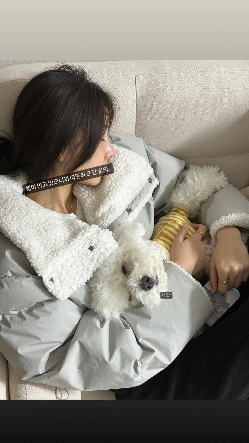 댕댕이 끌어안고 자는 안지현 치어리더 인스타.jpg