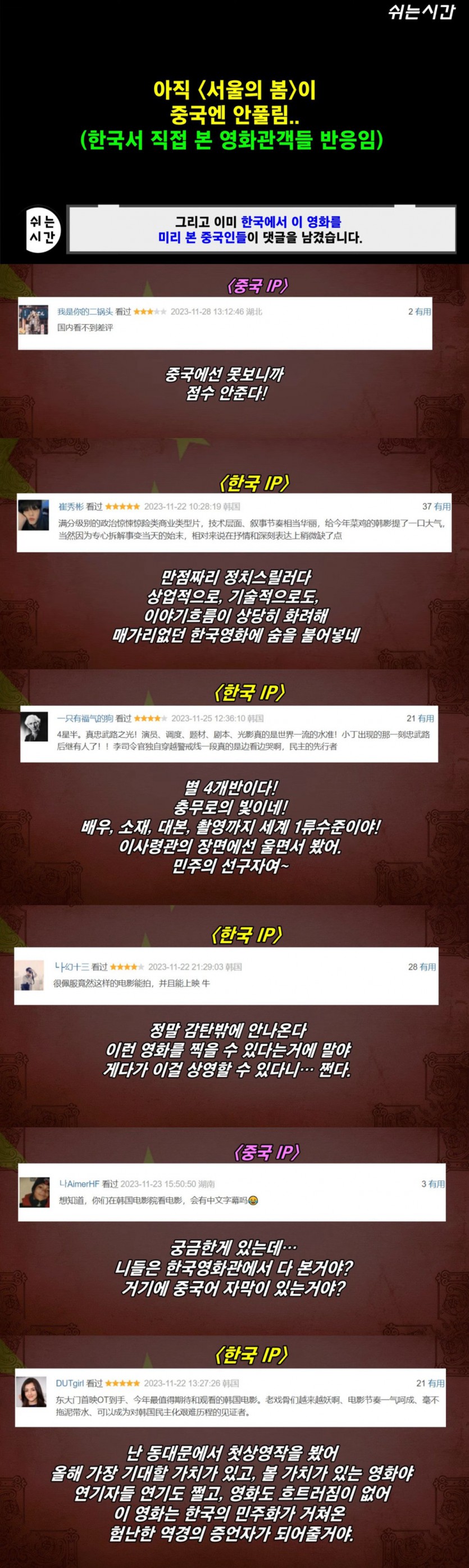 영화 '서울의 봄' 을 본 중국인들 반응