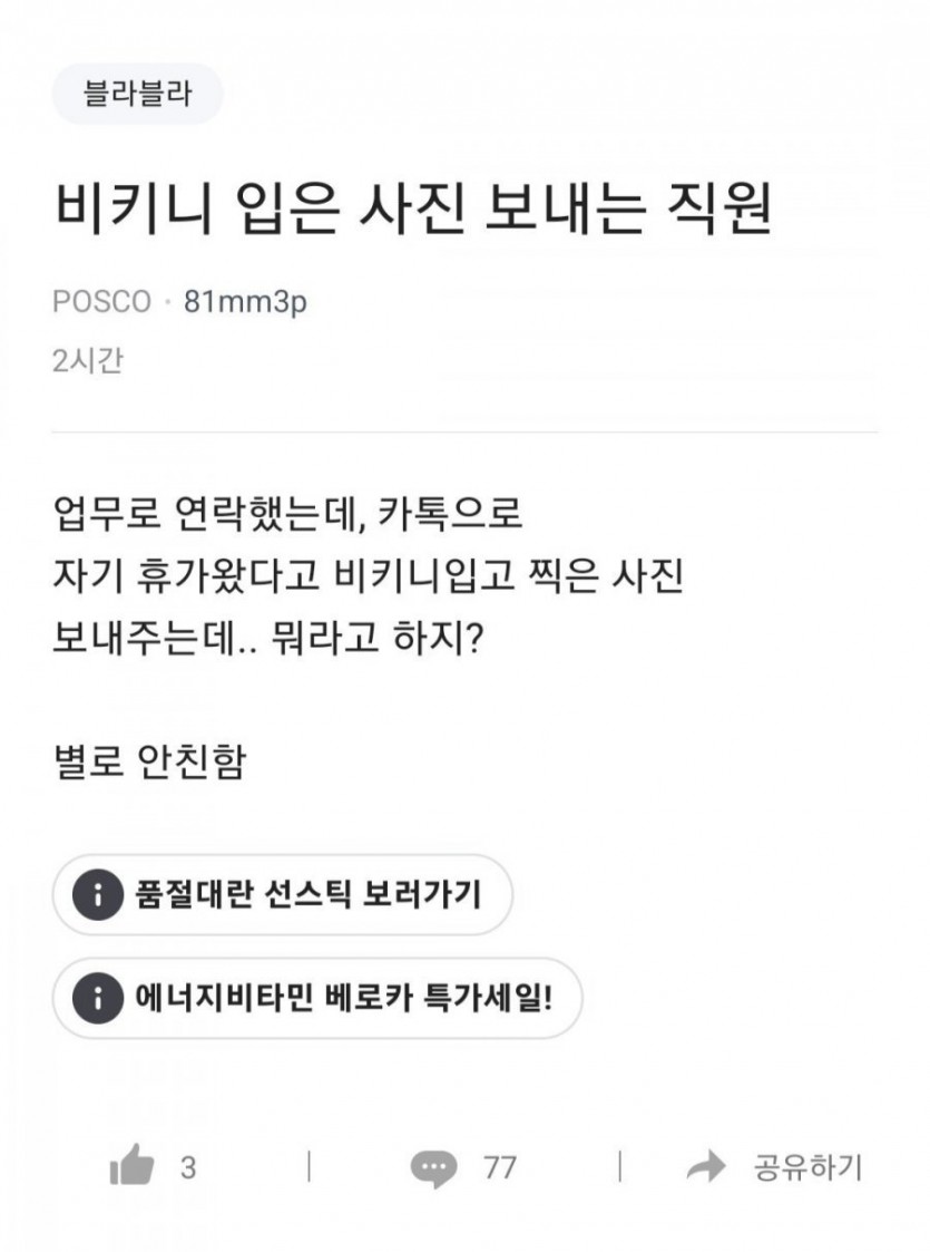 자꾸 비키니 입은 사진 보내는 여직원..jpg
