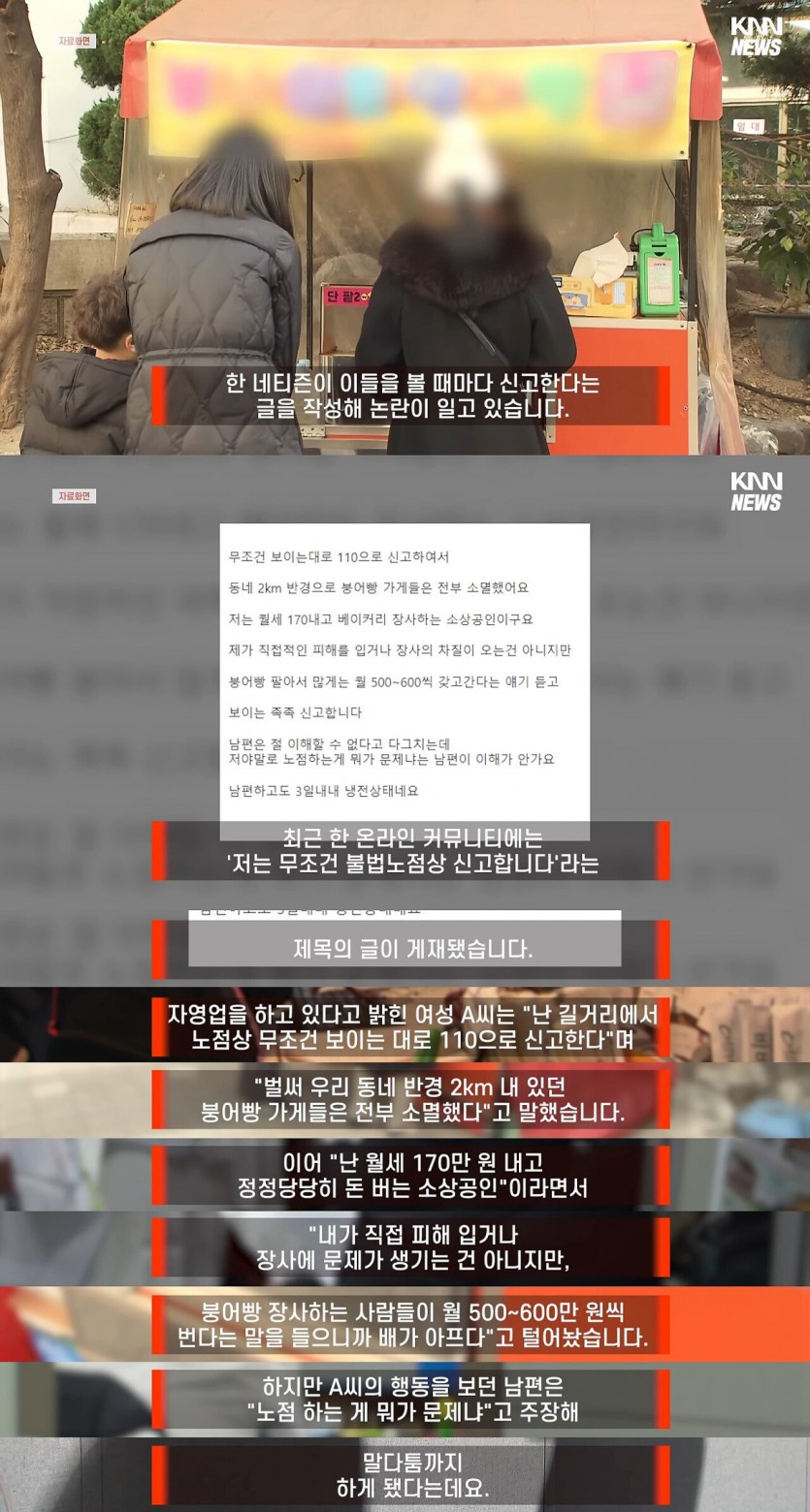 노점..붕어빵집을 보이면 다 신고해버리는 사람..