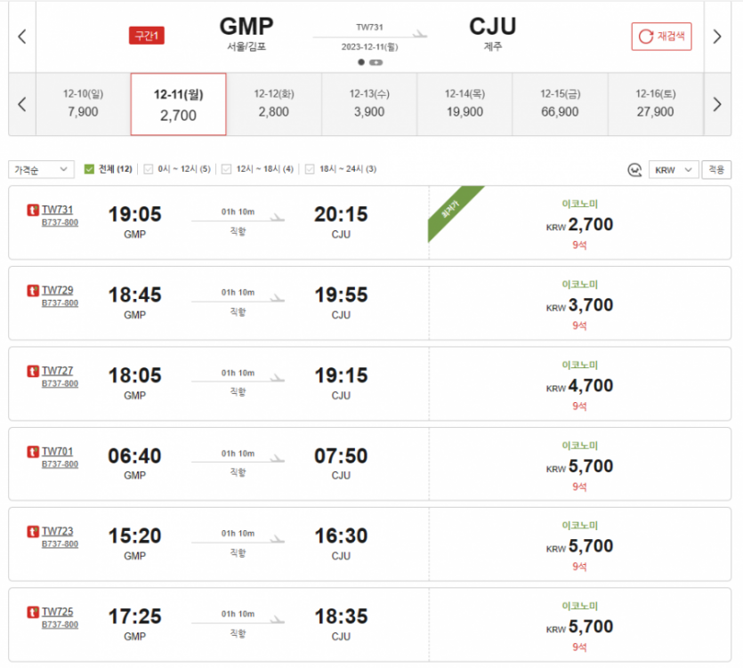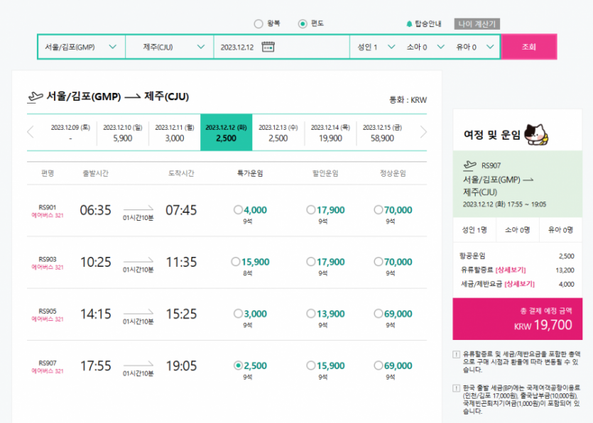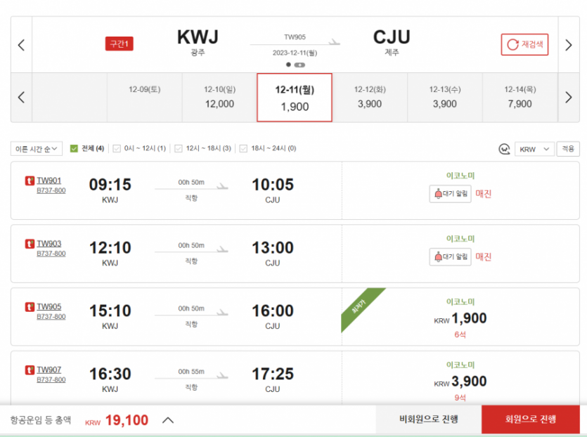 주중 제주 항공권 요금은 진짜 ㅋㅋㅋ