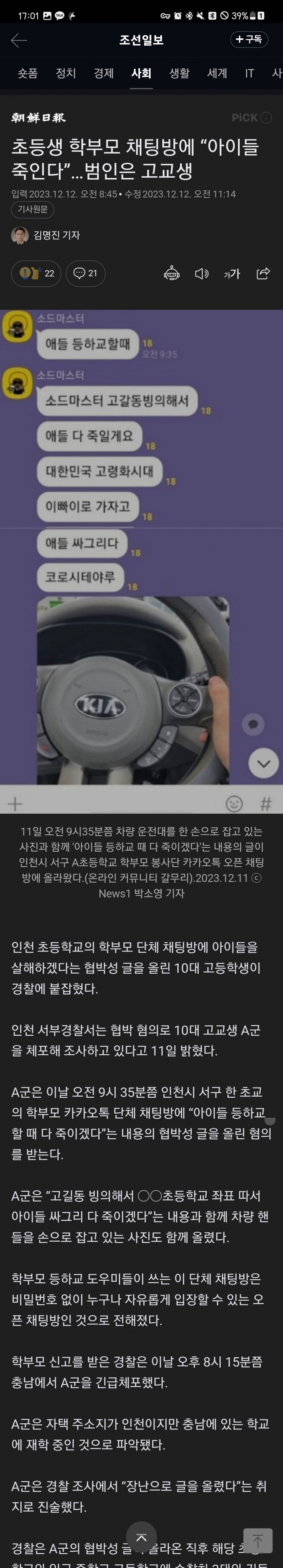 초등학교 학부모 채팅방에 살해 협박 글 결말