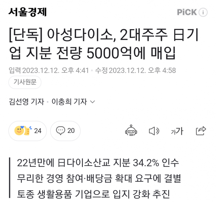 [단독] 아성다이소, 2대주주 日기업 지분 전량 5000억에 매입