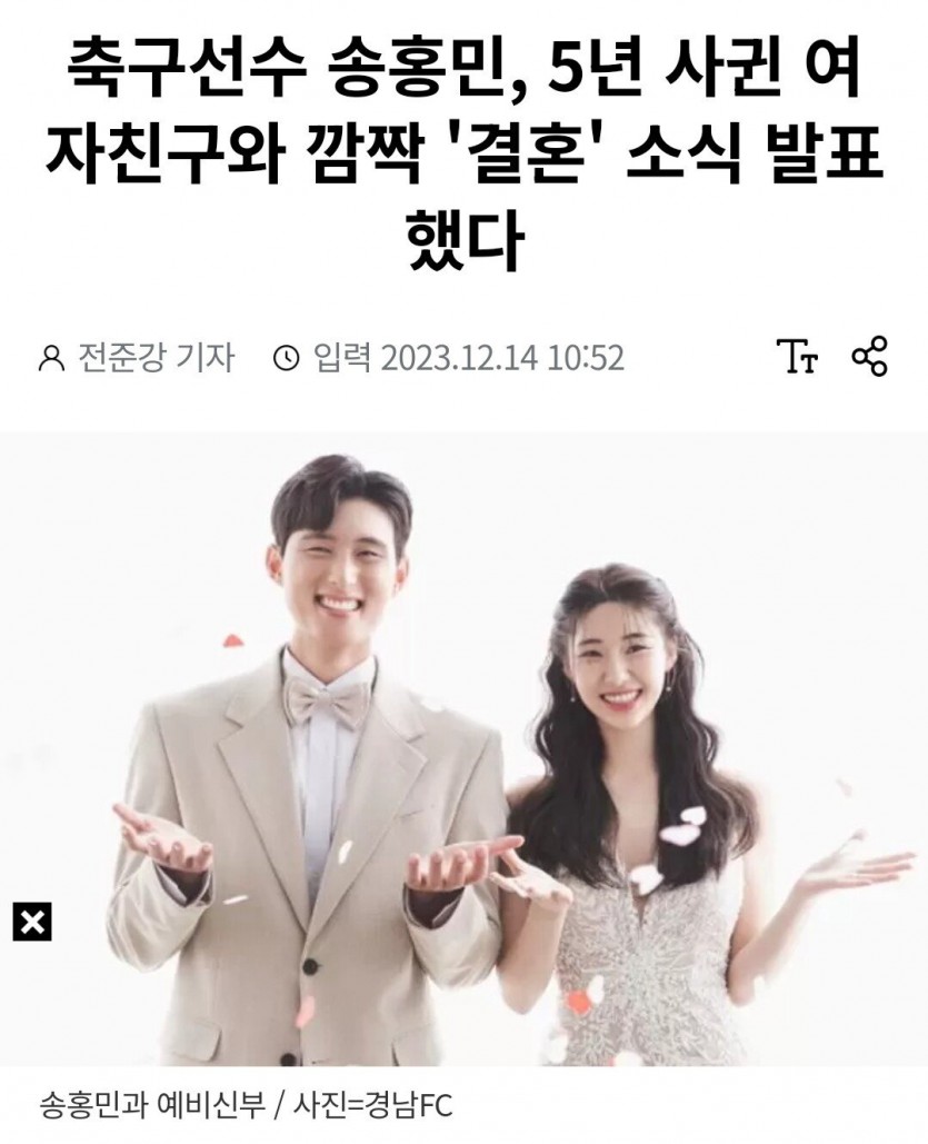 축구선수...홍민이형 5년 사귄 여자친구와 깜짝 결혼 소식발표,.