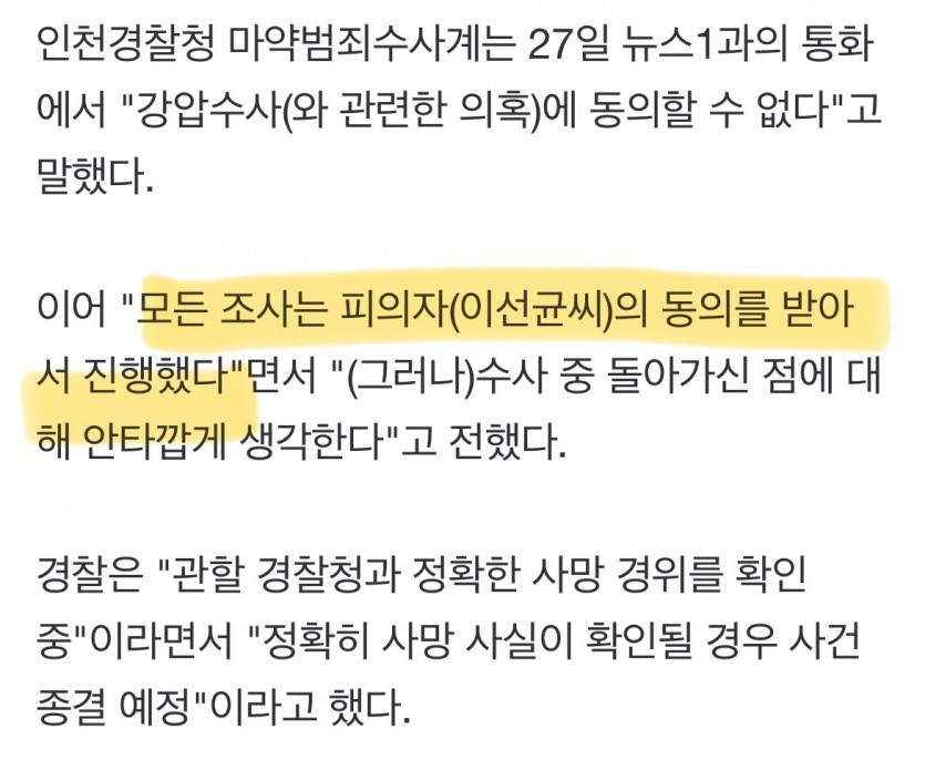 경찰청 안타깝지만 모든 조사는 이선균 동의받고진행.. 강압수사 없었다.