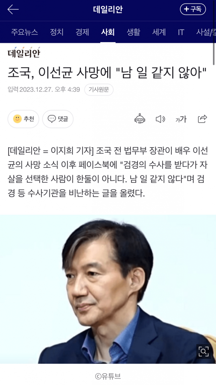 그러면서 "검경의 수사를 받다가 자살을 선택한 사람이 한둘이 아니다. 그러나 수사 권력은 책임지지 않는다. 언론도 책임지지 않는다"며 "깊은 내상을 입고 죽음을 선택한 자만 나약한 자가 된다. 남 일 같지 않다. 분노가 치민다. 고인의 명복을 빈다"고 했다.
