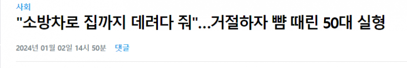 소방차로 집까지 대려다줘! 거절하자 뺌 때린 50대 실형.