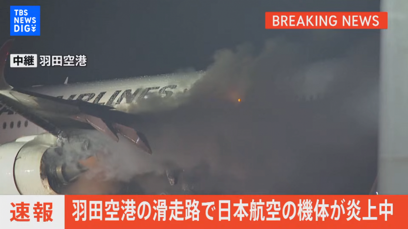 속보) 하네다 공항 일본항공 항공기화재