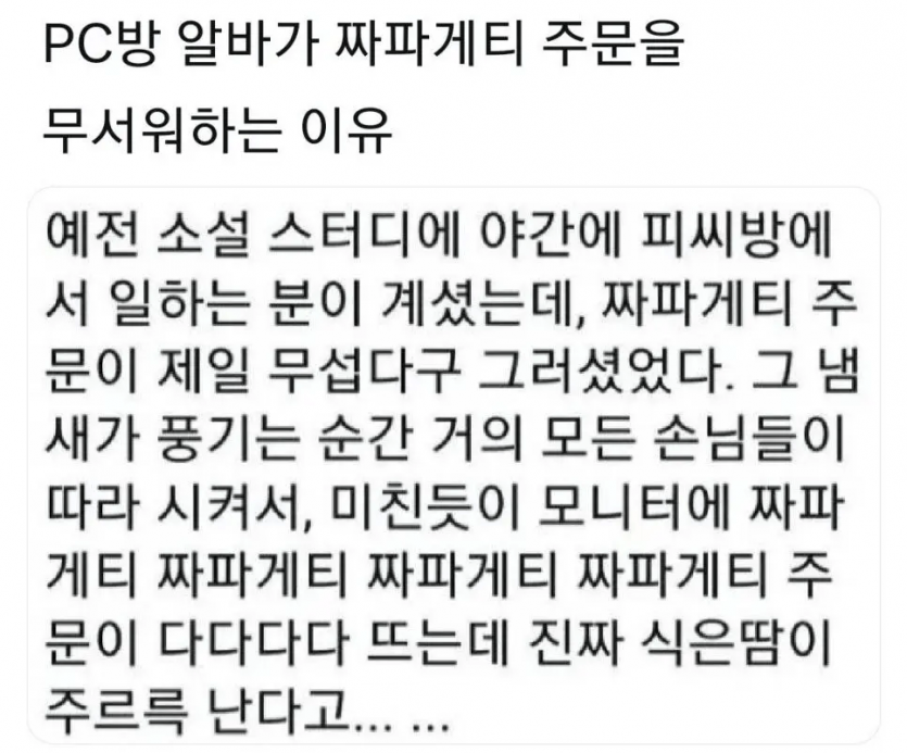 pc방 알바가 짜파게티 주문을 무서워하는 이유..