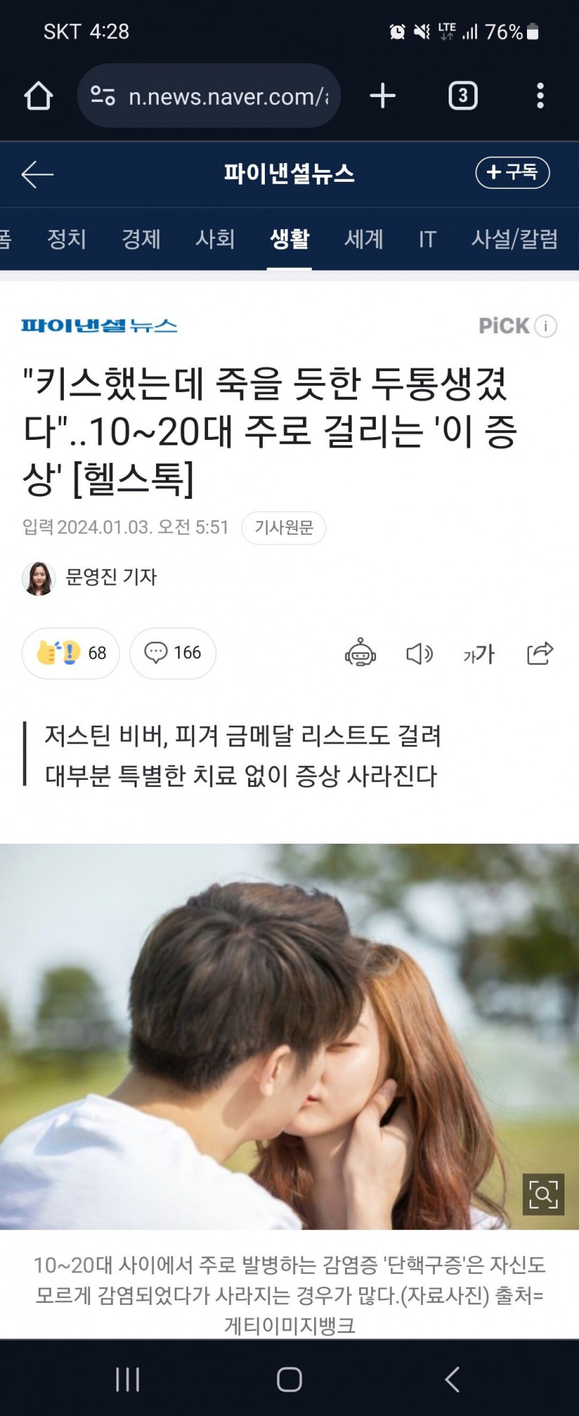 키스했는데 죽을듯한 두통이 생기는 키스병 10대20대 급증
