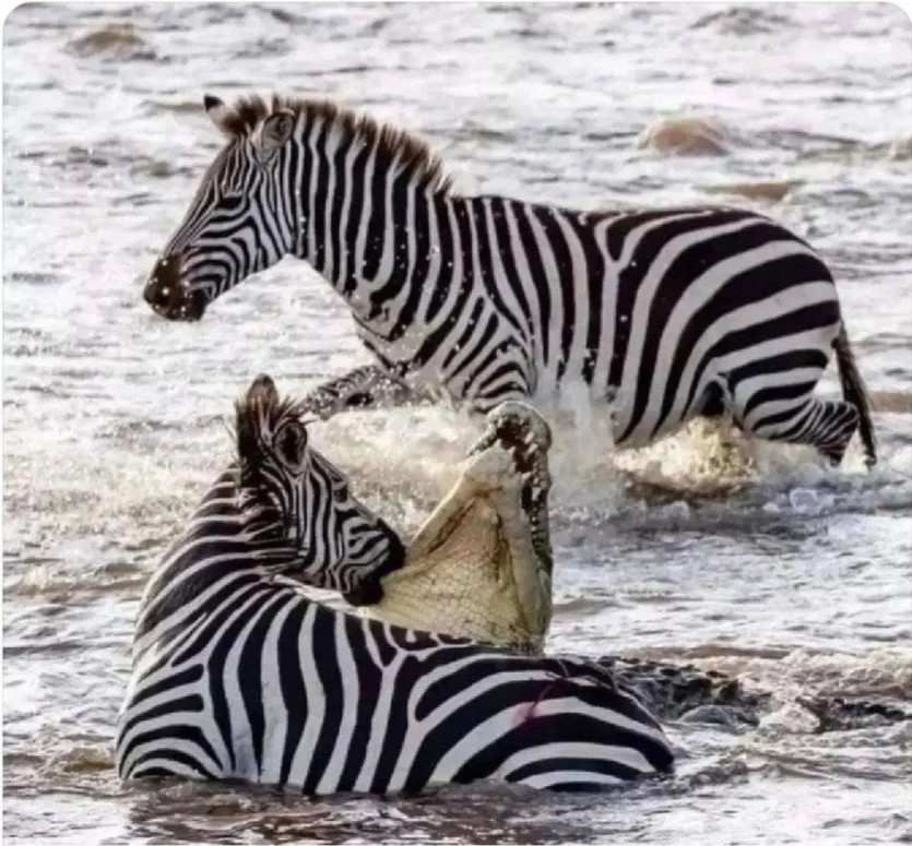 얼룩말을 사냥하는 악어.