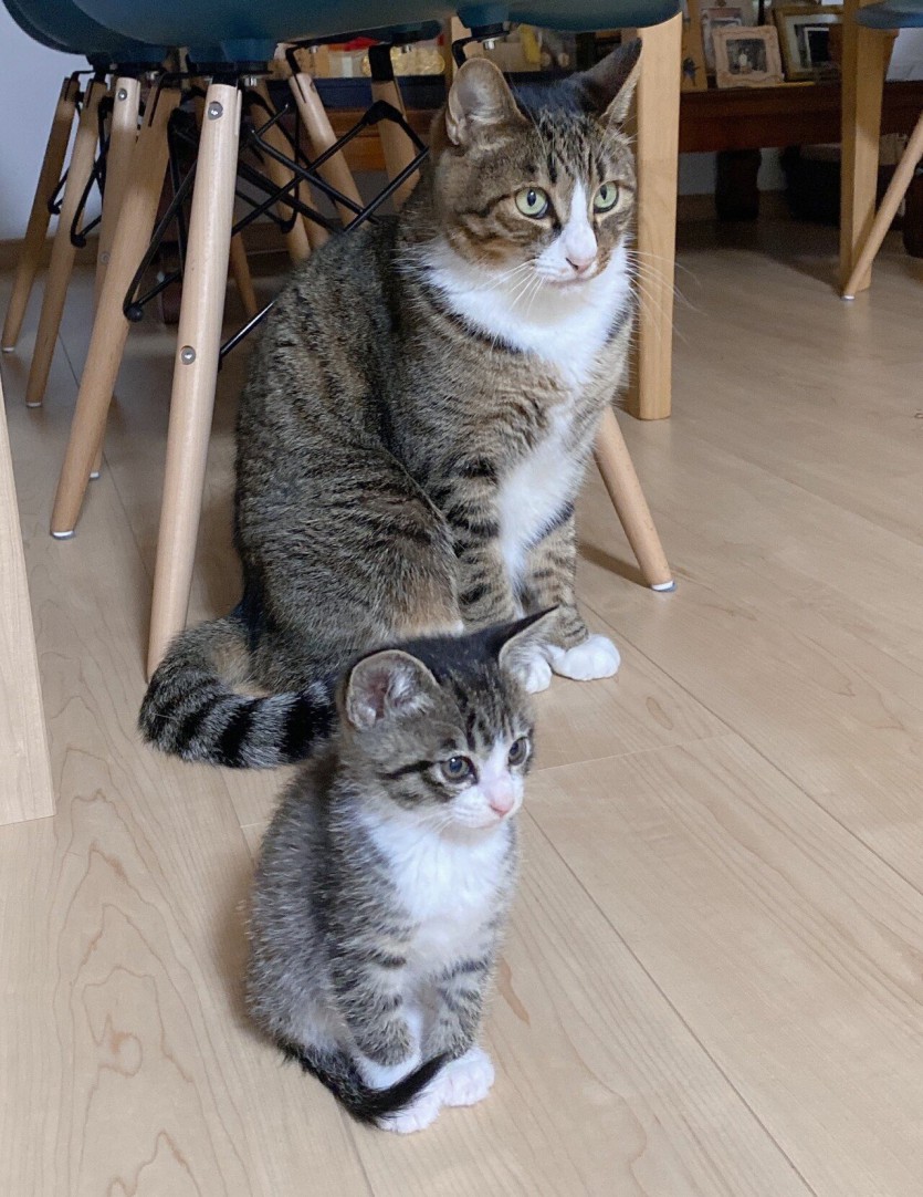 엄마랑 자세를 똑같이 하는 아기 냐옹이