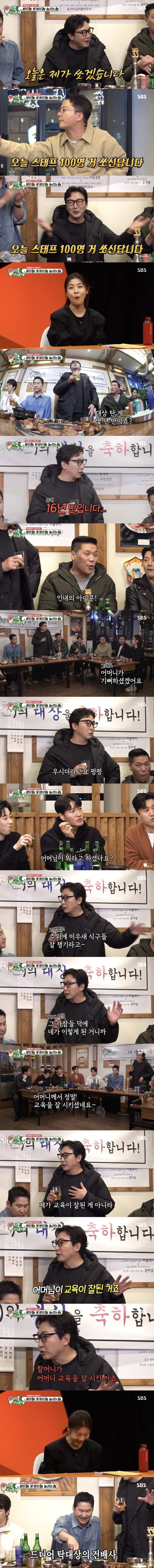 SBS 연예 대상 받고 미우새팀 100명분 회식 쏜 탁재훈