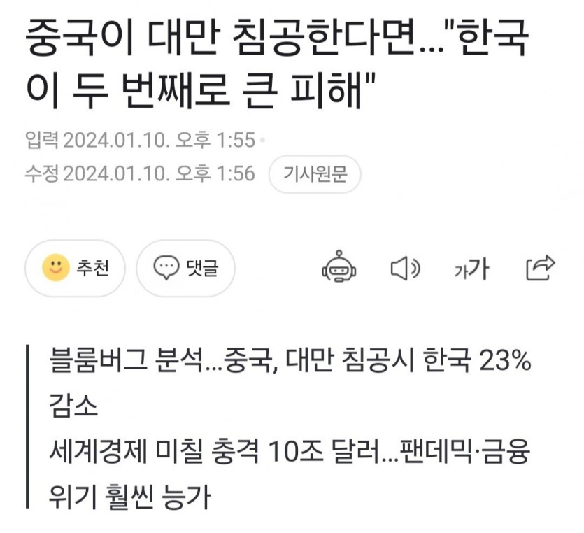 중국이 대만 침곰한다면 ..중국보다 한국이 피해가 더 크다.
