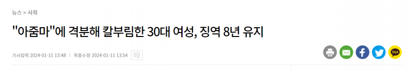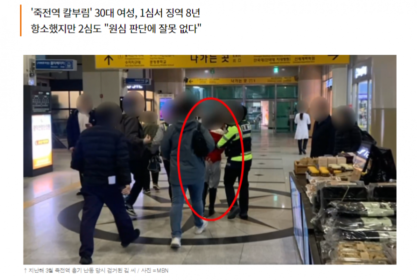"아줌마"라고 불러서 칼부림한 30대 여성 징역 8년