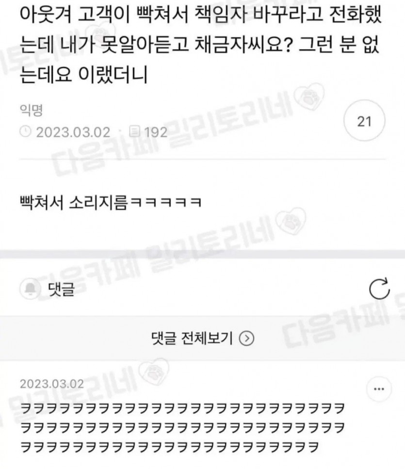 고객이 빡쳐서 책임자 바꾸라고 전화했는데..