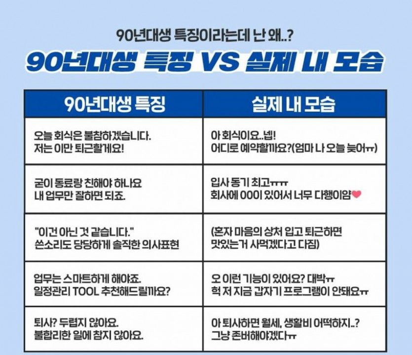 90년대생 특징 vs 실제 내모습