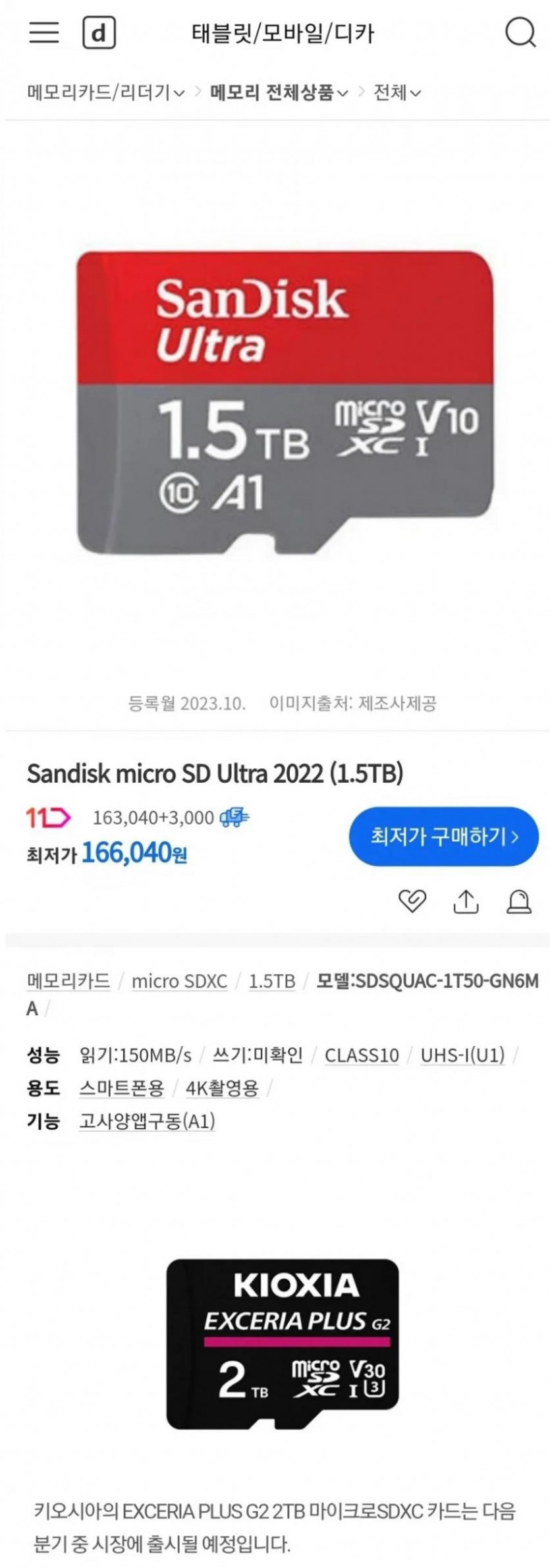 요즘 마이크로 SD카드 용량
