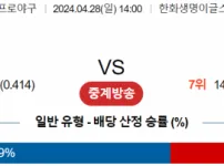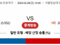 4월 28일 14:00 KBO 한화 : 두산 분석표