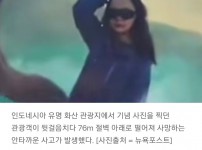 위험하다고 경고 했는데 인생샷 남기고 화산 분화구 추작한 중국여성