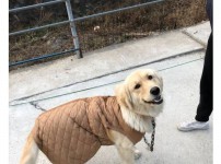 송아지 방한복인데 강아지를 입혔다.