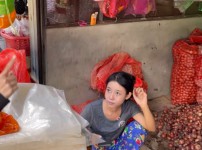 미얀마 양파까고 있는 여자의 외모