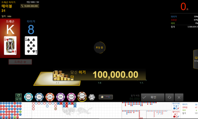 섹시게이밍 드래곤타이거 테이블31 출근하고 2연타 퇴근 ㅋㅋ