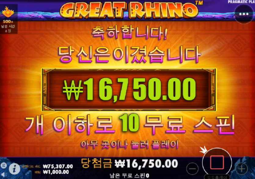 1번째사진 : 프라그마틱채널 그레이트 라이노게임