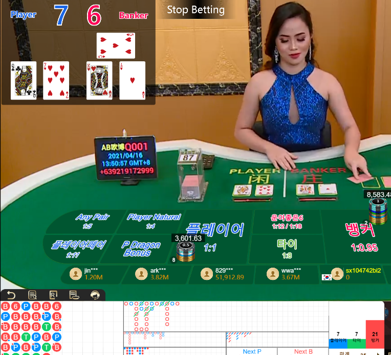 바카라 뱅커 올인벳인데 플레이어 승 나오네요