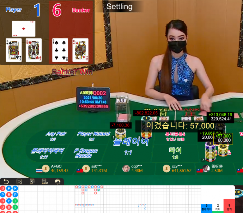 이번판은 딱 뱅커 타이밍 판이지 뱅커로 이겼습니다