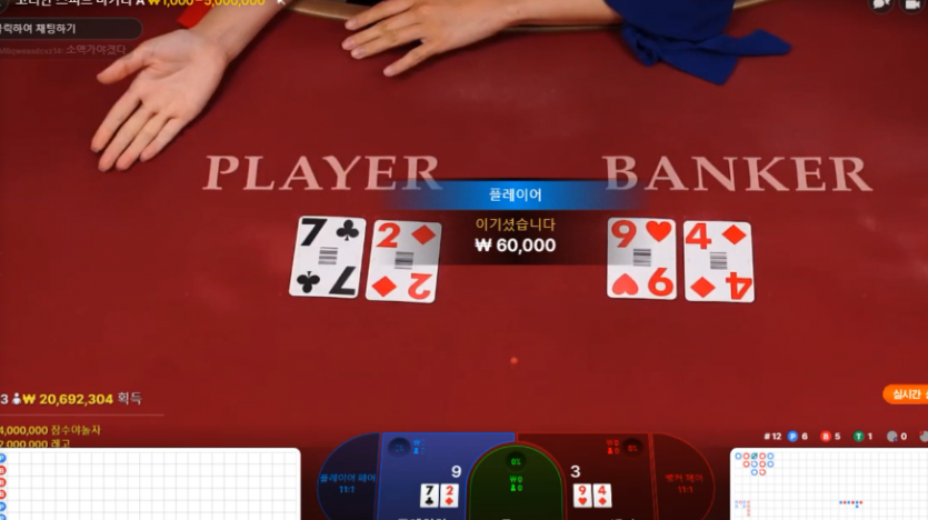 바카라 뱅커로 3번 지고 플레이어 2번 이기네요