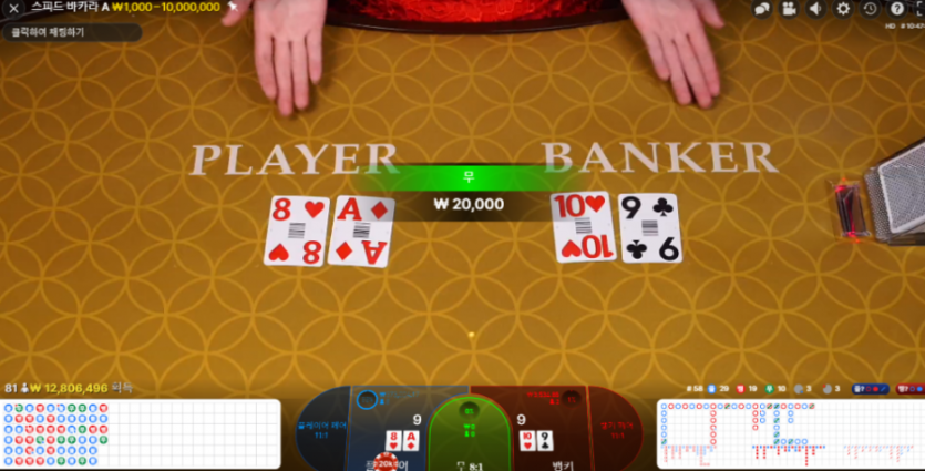 플레이어9 갔는데 뱅커도 9가 나오네요
