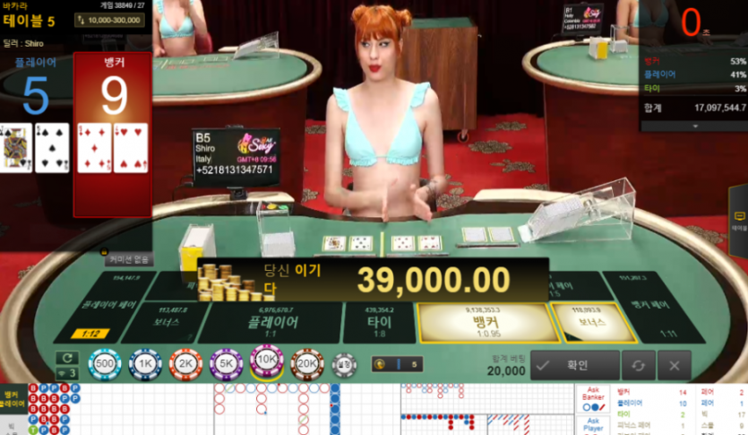 플레이어줄 끊고 뱅커 나올줄알고 싹 먹었네요
