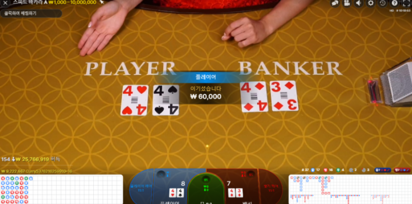 뱅커 두번의 플레이어한번 3번 연속 다가서 다먹음 ㅋㅋ