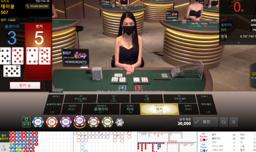 먹은줄 알았는데 뒷패 한장 더 나와서 뱅커가 이기네요