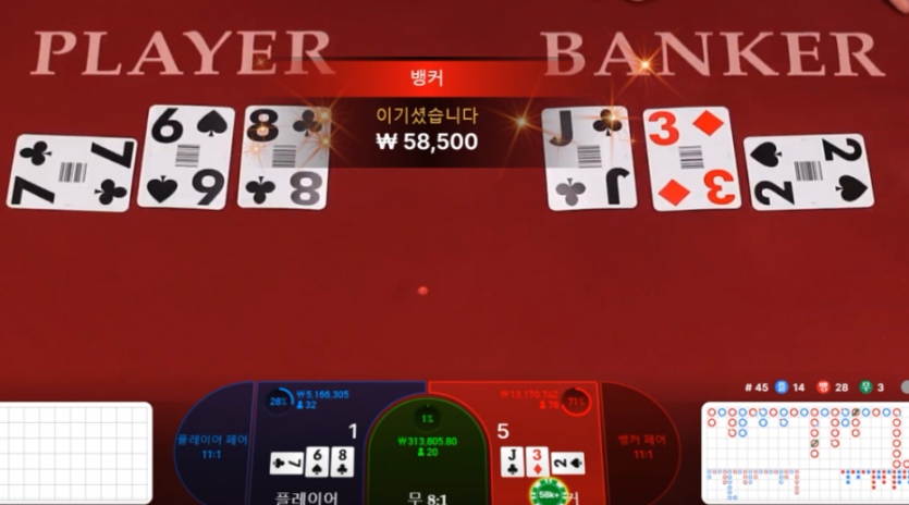 뱅커 줄이 잘 나오기는 잘 나오네요