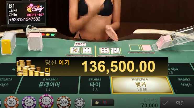 플레이어로 먹었으면 깔끔한데 뱅커로 먹어서 뒷자리 생기네요