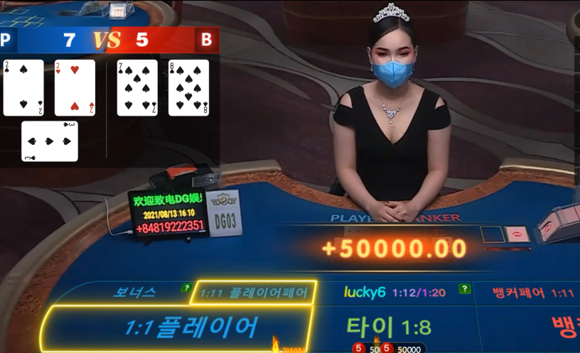 플레이어 배팅 했는데 뒷장 잘 받아서 이렇게 이깁니다