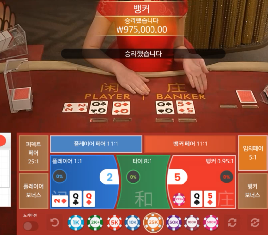 뱅커에 베팅해서 먹고 시작합니다 200만 되면 바로 빼야지
