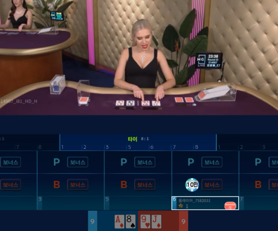 바카라 플레이어 9 나와서 망연자실 하고 있는데 뱅커도 9 나이스