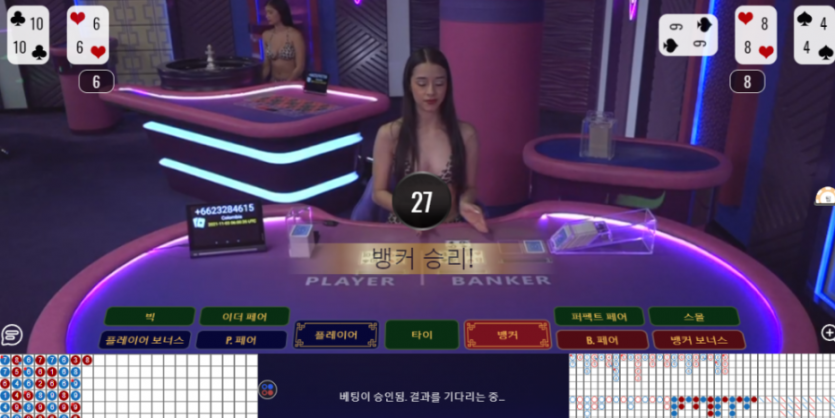 뱅커가 3번째 카드 받으니 바로 지네요 ㅠㅠ