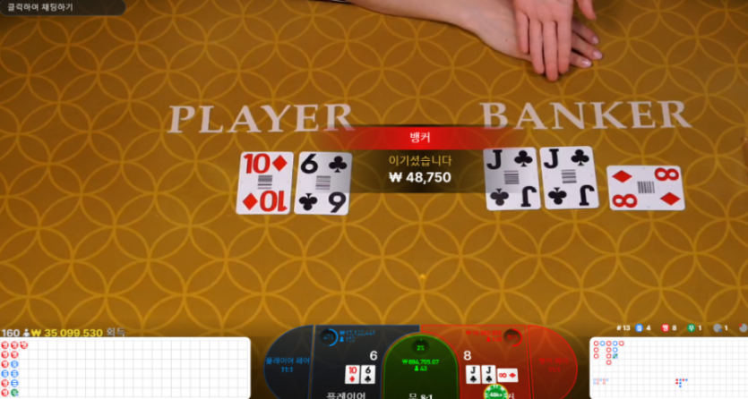 바카라 뱅커 J두개 나오길래 . 놀랏는데