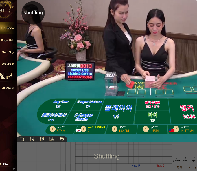올뱃게이밍에서 바카라 한번 해봣네요 한번 먹고 바로 셔플링