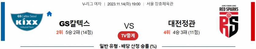 11월 14일 19:00 V-리그 여자 GS칼텍스 : 정관장 국내배구분석